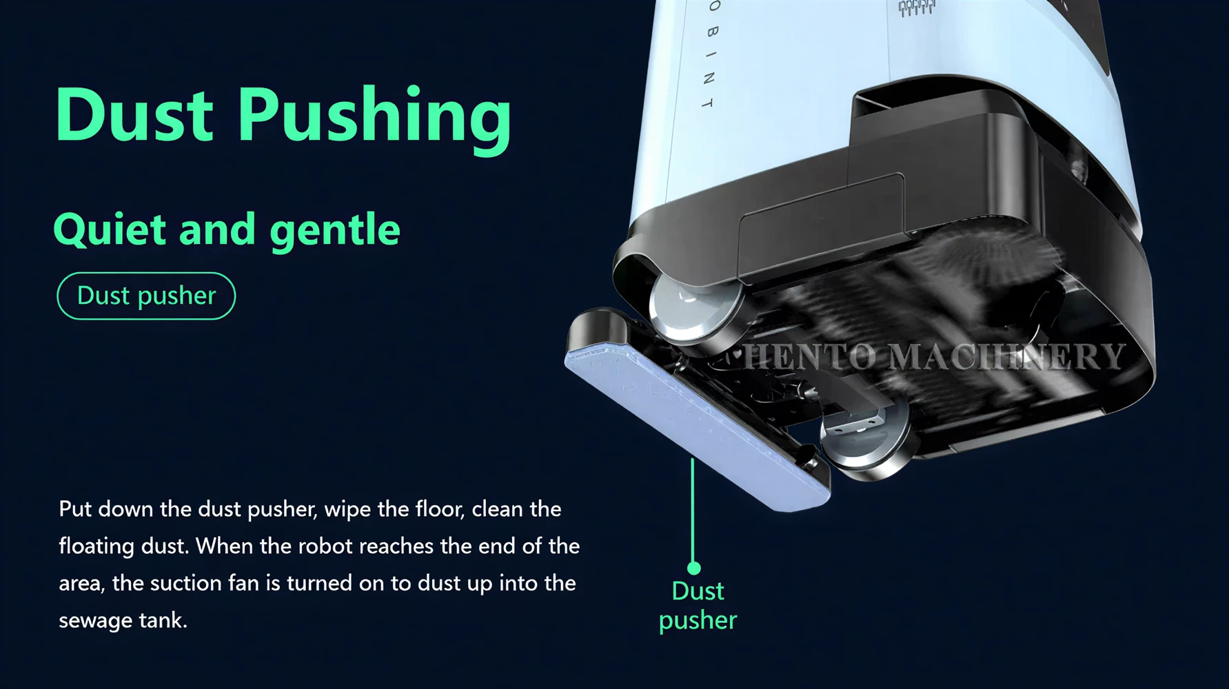 A porlehúzó óvatosan áttörli a padlót, eltávolítva a szálló port a felületről. Amikor a robot eléri a takarítási terület végét, a szívóventilátor bekapcsol, és a port a szennyvíztartályba juttatja.